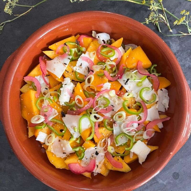 or baked rice with mint, pomegranate salsa and pistachios - Lime coleslaw with poppy seeds and curry leaf oil